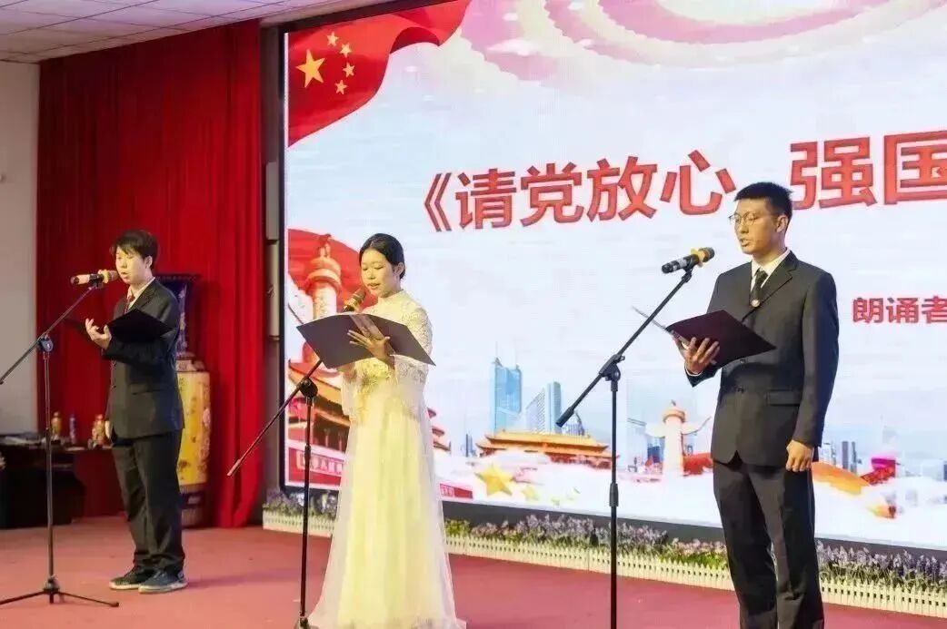数媒2001班学生表演诗朗诵《请党放心 强国有我》,20级班主任表演诗朗诵《做一个好人》。