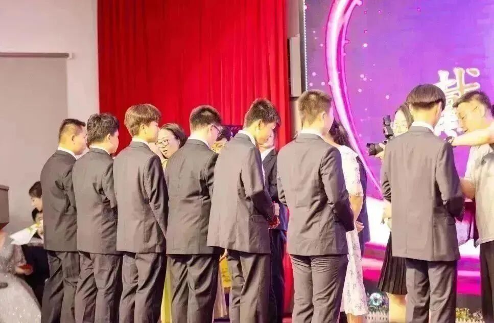 学生为班主任、在校老师行鞠躬礼。