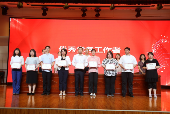 本次大会共表彰了2先进基层党组织12优秀共产党员9优秀党务工作者1优秀党建创新项目1优秀党支部工作法。与会领导逐一为受表彰的集体和个人颁奖。学院党委副书记、纪委书记、工会负责人程忠秋宣读表彰决定,并号召广大共产党员以先进典型为榜样,以更加饱满的政治热情、昂扬的拼搏精神和优异的工作业绩,在全力推进学院一二一一核心战略落实落地的过程中贡献力量。