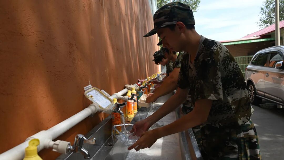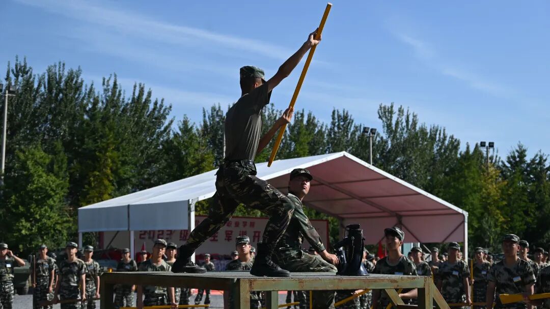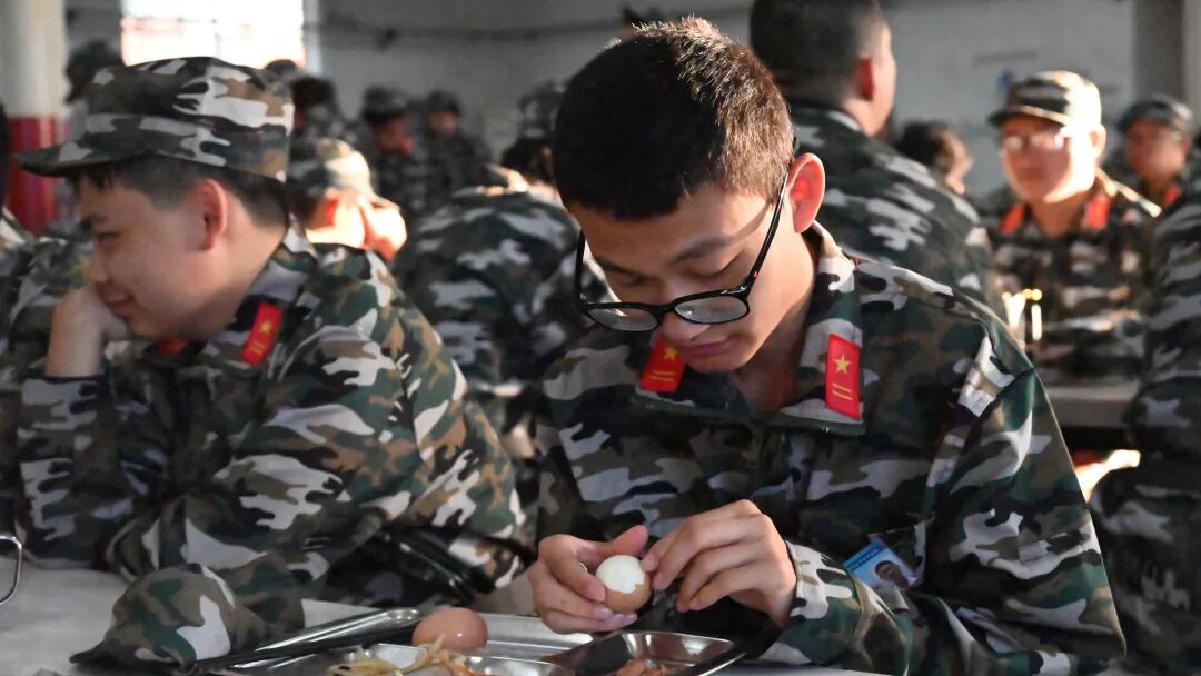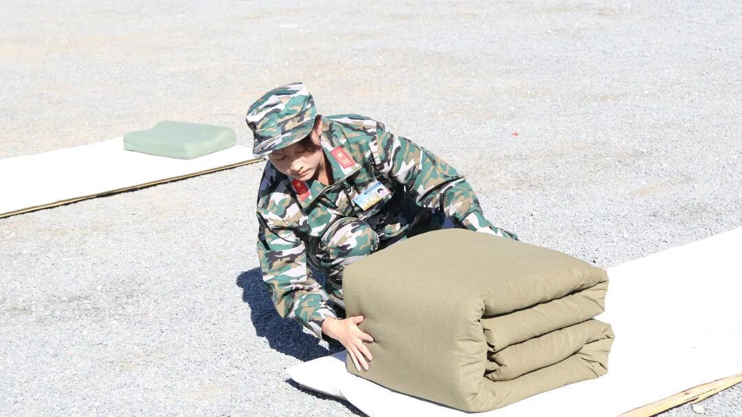 紧张激烈的内务大赛上被子被叠成“豆腐块”