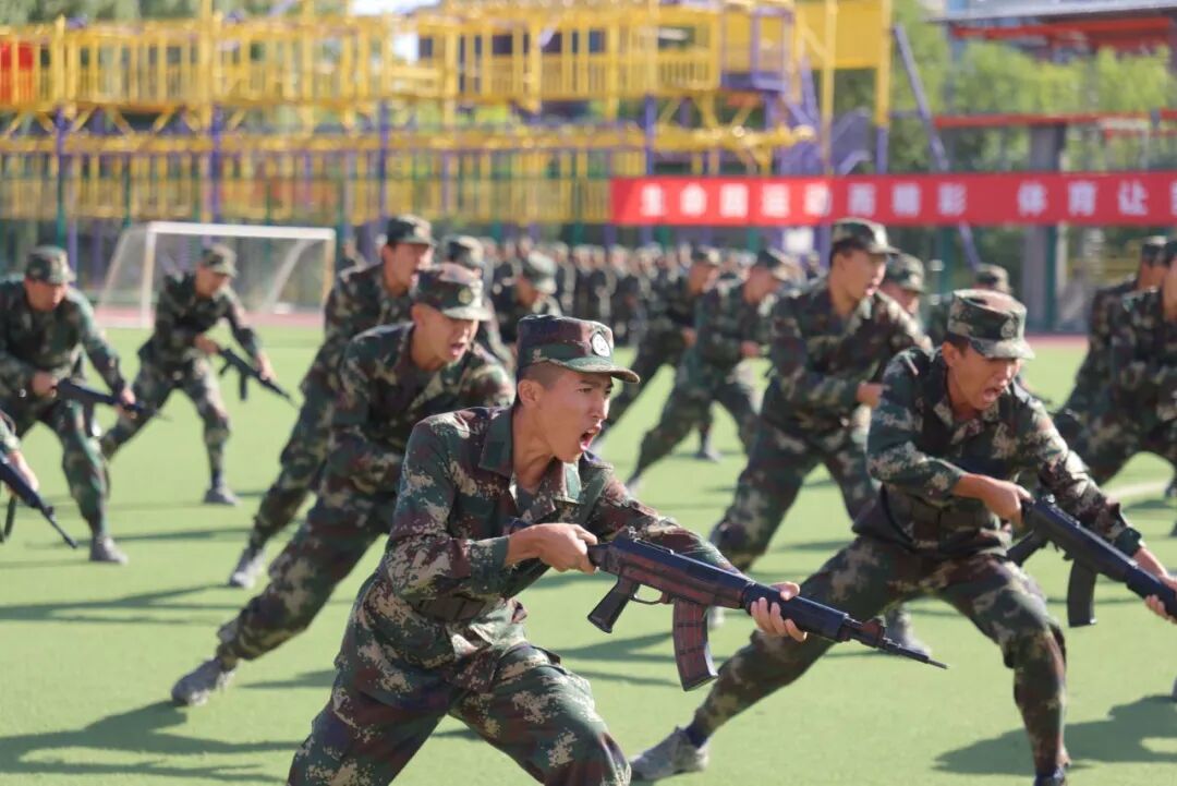 参训学生集体进行了精彩的汇报表演,先后展示了分列式、擒拿拳、匕首操、棍术、刺杀操、旗语、战术、拼图组字等军训成果。同学们的动作整齐划一、铿锵有力、口号响亮、气势磅礴,充分展现了我校参训学生朝气蓬勃、敢于吃苦、勇于拼搏的良好精神风貌,彰显了电科学子青春的朝气与活力。祖国万岁、65周年校庆标识等字样表达了北电科学子对祖国和学校的深深爱意。