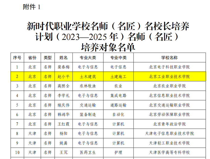 近日,教育部办公厅公布新时代职业学校名师(名匠)名校长培养计划(2023—2025年)培养对象和培养基地名单,我校建筑与测绘工程学院赵小平教授成功入选名师培养对象。