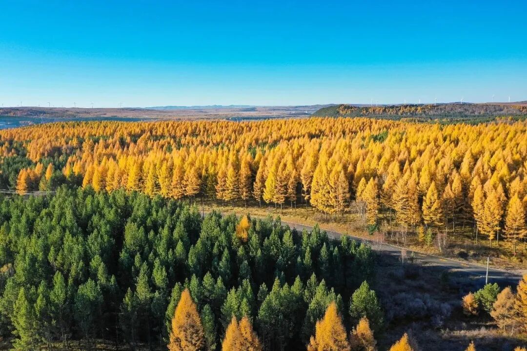 或浓或淡的秋色,像调色板一样铺陈开来。明黄的白桦叶热烈、灿烂,墨绿的落叶松浓郁、雅致,共同织就出一幅色彩绚丽的秋景图。