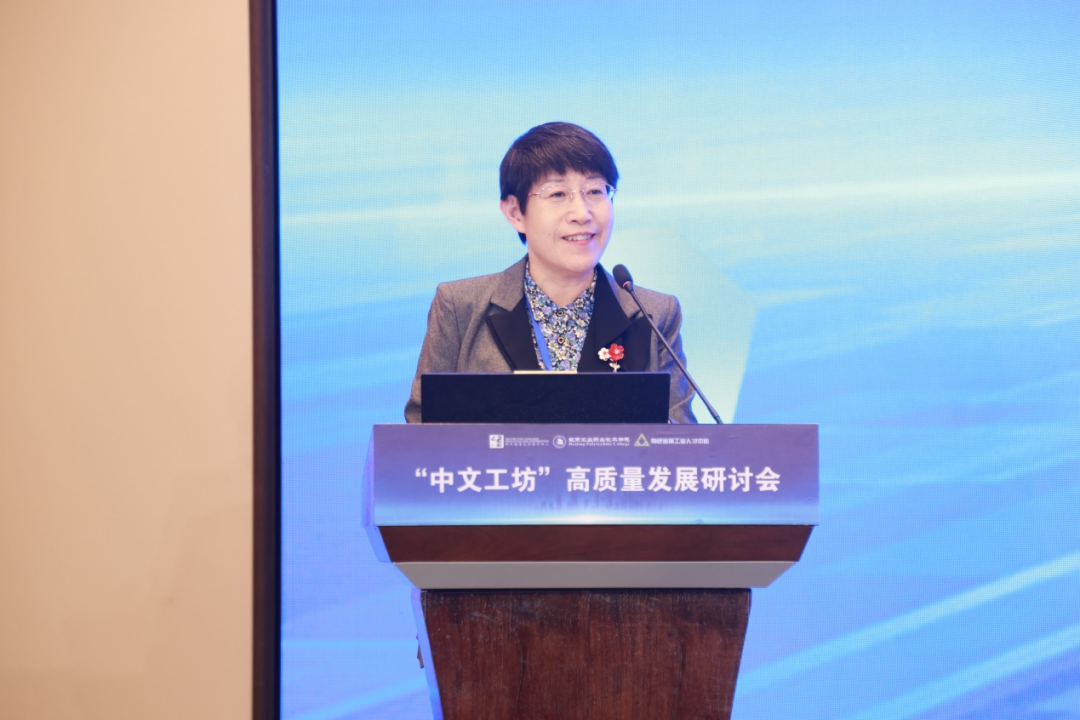 北京师范大学宋继华教授作题为《中文工坊高质量可持续发展策略》的主旨发言