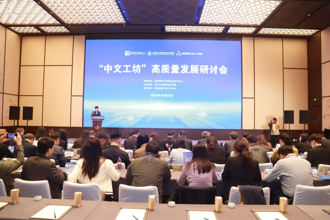 2023年10月23日,由教育部中外语言交流合作中心指导(以下简称“语合中心”)、北京工业职业技术学院主办、有色金属工业人才中心协办的“中文工坊”高质量发展研讨会在首钢园香格里拉酒店顺利召开。