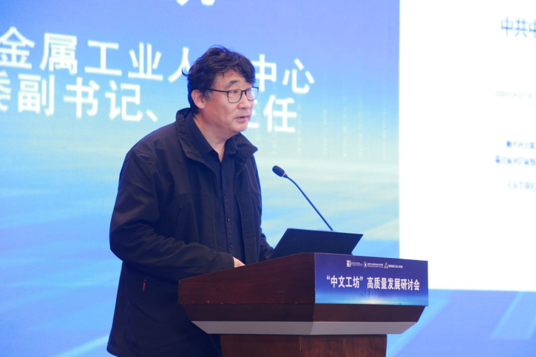 有色金属工业人才中心党委副书记、副主任宋凯作题为《发挥企业主体作用,建设运营中文工坊》的主旨发言