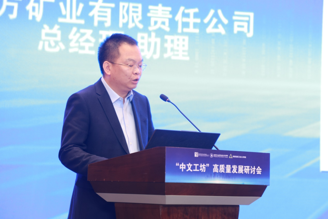 北方矿业有限责任公司总经理助理徐敬元作了题《“中文工坊”建设工作交流汇报》的交流报告