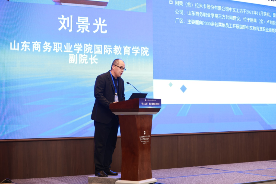 山东商务职业学院副院长刘景光作题为《高职院校参与中文工坊建设的探索与实践—以山东商务职业学院为例》的主旨报告