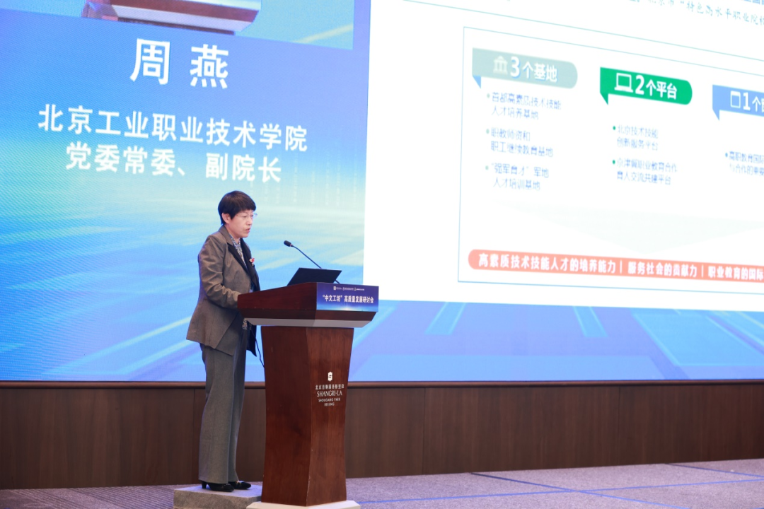 我校安江英院长代表学校发表致辞。安院长指出,2021年学校与教育部语合中心共建了“中文+职业技能”教育实践与研究基地,基地的主要职能有“中文+职业技能”各类培训、“中文+职业技能”教学资源开发、“中文+职业技能”相关学术研究等。近年来学校在“中文+职业技能”领域做了大量的探索与实践,如开展海外中资企业本土员工“中文+职业技能”培训、“中文+职业技能”教材开发、海外本土中文教师培养、汉语桥项目等,为“一带一路”沿线国家培养了大量优秀的技术技能人才,增进了“一带一路”国家人民之间的友好交流与民心相通。同时我校还与教育部语合中心、西藏珠峰阿根廷锂钾有限公司合作共建了南美洲第一家中文工坊—阿根廷“锂钾有限公司中文工坊”,今年我校将派出1名北京大工匠—机电工程学院的郭凯老师赴阿根廷为企业本土员工开展“中文+职业技能”培训。