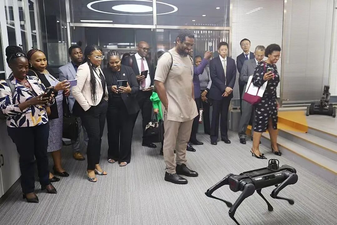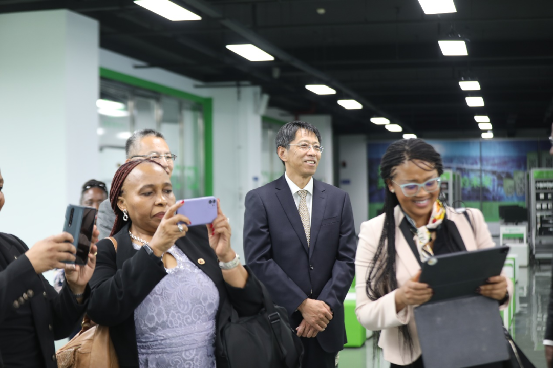 马纳梅拉副部长一行在高喜军书记的陪同下依次参观了中法能效管理应用人才培养与研究中心、汽车维修实训中心、机器人实训中心以及智慧工地实训中心,对我校理实一体化的教学模式和优质的实训条件给予高度赞赏和充分肯定。