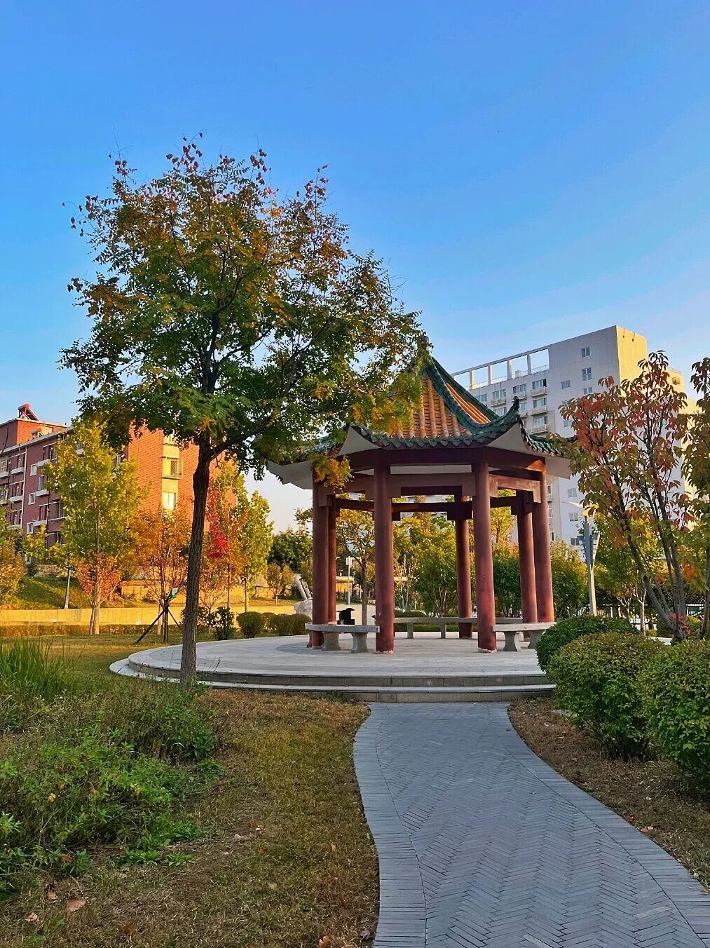 我看着秋天的晚霞,秋天的宿舍楼,秋天所有的美景,都在图书馆学习一整天之后伴着晚风漫渡在我的心海。我爱校园里的秋。