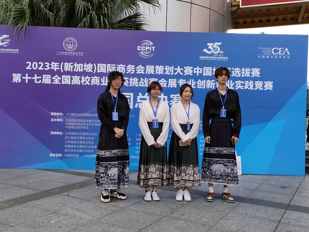 11月26日,在2023年(新加坡)国际商务会展策划大赛中国赛区选拔赛、第十七届全国高校商业精英挑战赛会展专业创新创业实践竞赛全国总决赛上,由张磊、丁妍妍指导,2022会展专业学生沈敬伦、梁若滢,2023会展专业学生陈星如、李一凡组成的参赛团队获得高职组全国冠军,将在明年7月代表中国赛区参加国际比赛。